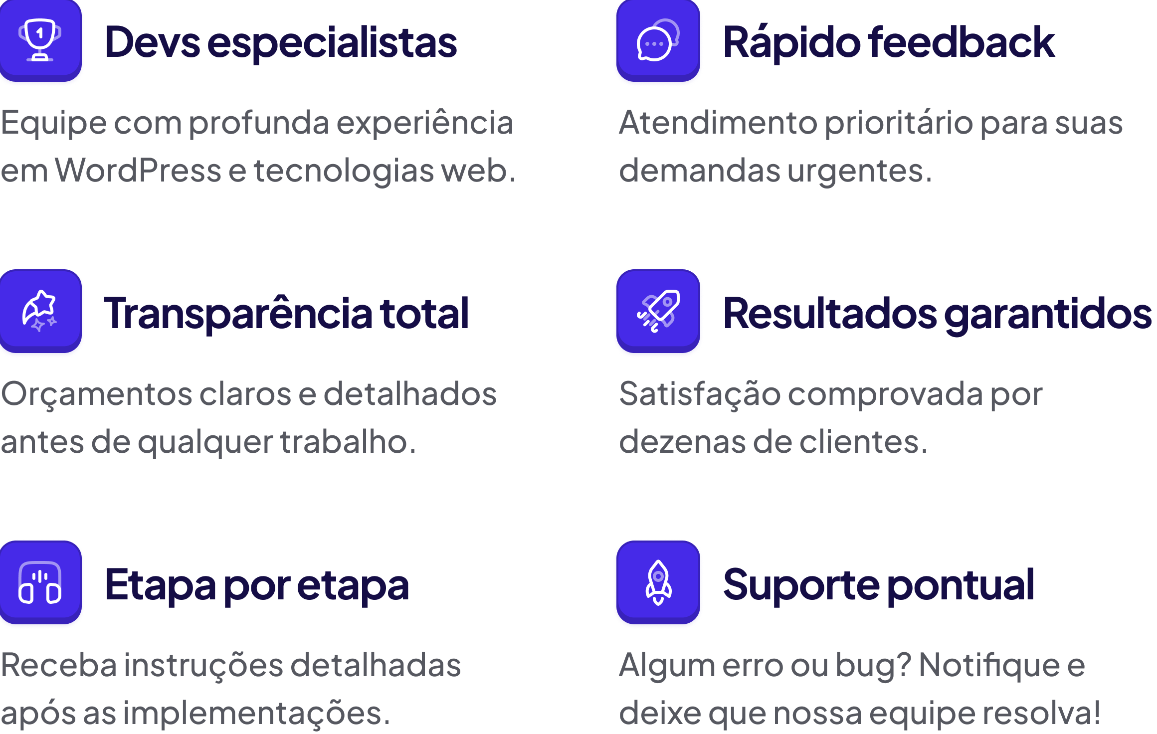 Manter um site atualizado e funcionando perfeitamente exige conhecimento técnico que muitas vezes não está disponível internamente na sua empresa. Problemas técnicos e atualizações pendentes podem prejudicar seu negócio e afastar clientes.